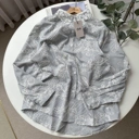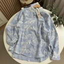 Oclo Blue Series Shirt Casual Basic Atasan Kemeja Wanita Katun Salur Brukat Renda Lengan Panjang OCL02452